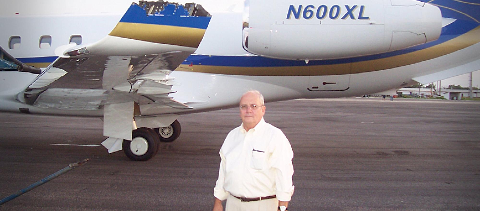 Joe Sharkey in 2006, with the Embraer Legacy 600 that collided with a Brazilian airliner over the Amazon jungle.