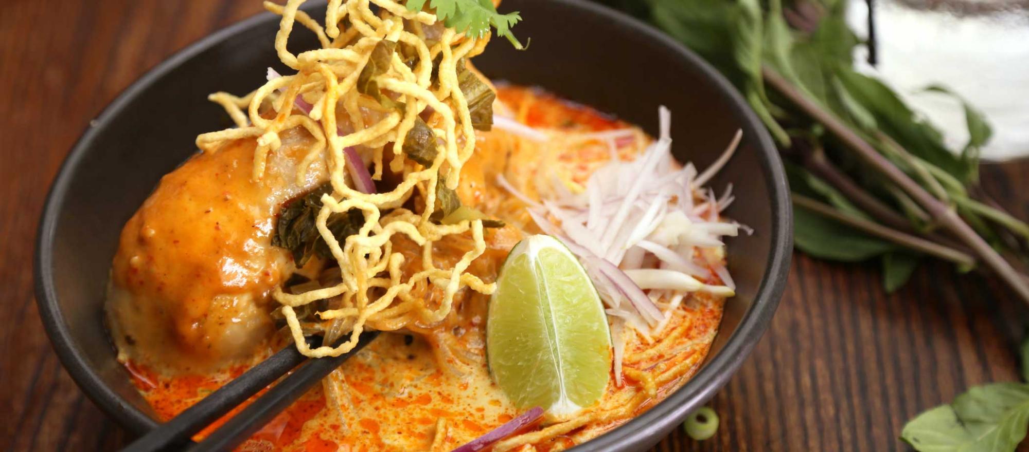 1. Khao soi. Northern Thailand’s version of khao soi (which is made differently in neighboring Laos and Myanmar) is an addictive dish of soft egg noodles and (traditionally) chicken leg in a creamy yellow curry, garnished with a nest of deep-fried crispy noodles.