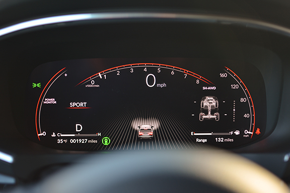 The touchpad system isn’t as immediately intuitive as a touchscreen, but after a day or two, I found it easy to use. The advantage of using the touchpad is that the screen can be mounted high up and away on the dashboard, so you won’t have to glance down at maps, for instance. Avoiding fingerprints is a bonus. I appreciate that Acura has kept many of the most-often-used controls as physical buttons, rather than folding them into the screen. The main instrument panel is also a 12.3-inch LCD screen, and there’s a head-up display on the windshield, too. The integration of these elements feels user-friendly and well thought out.