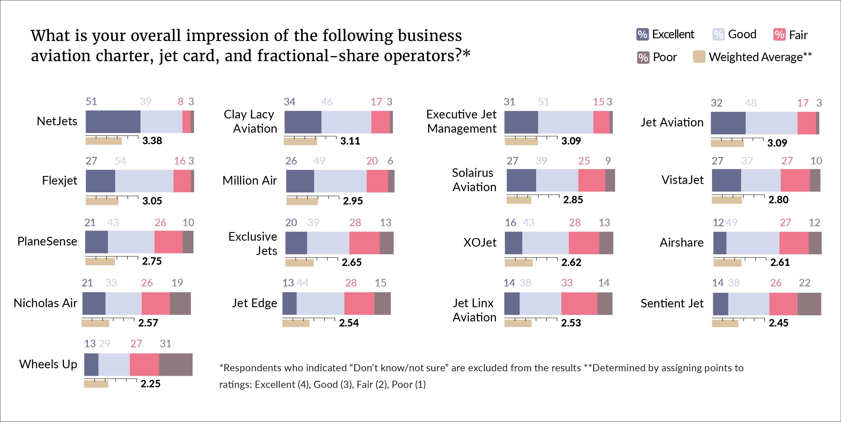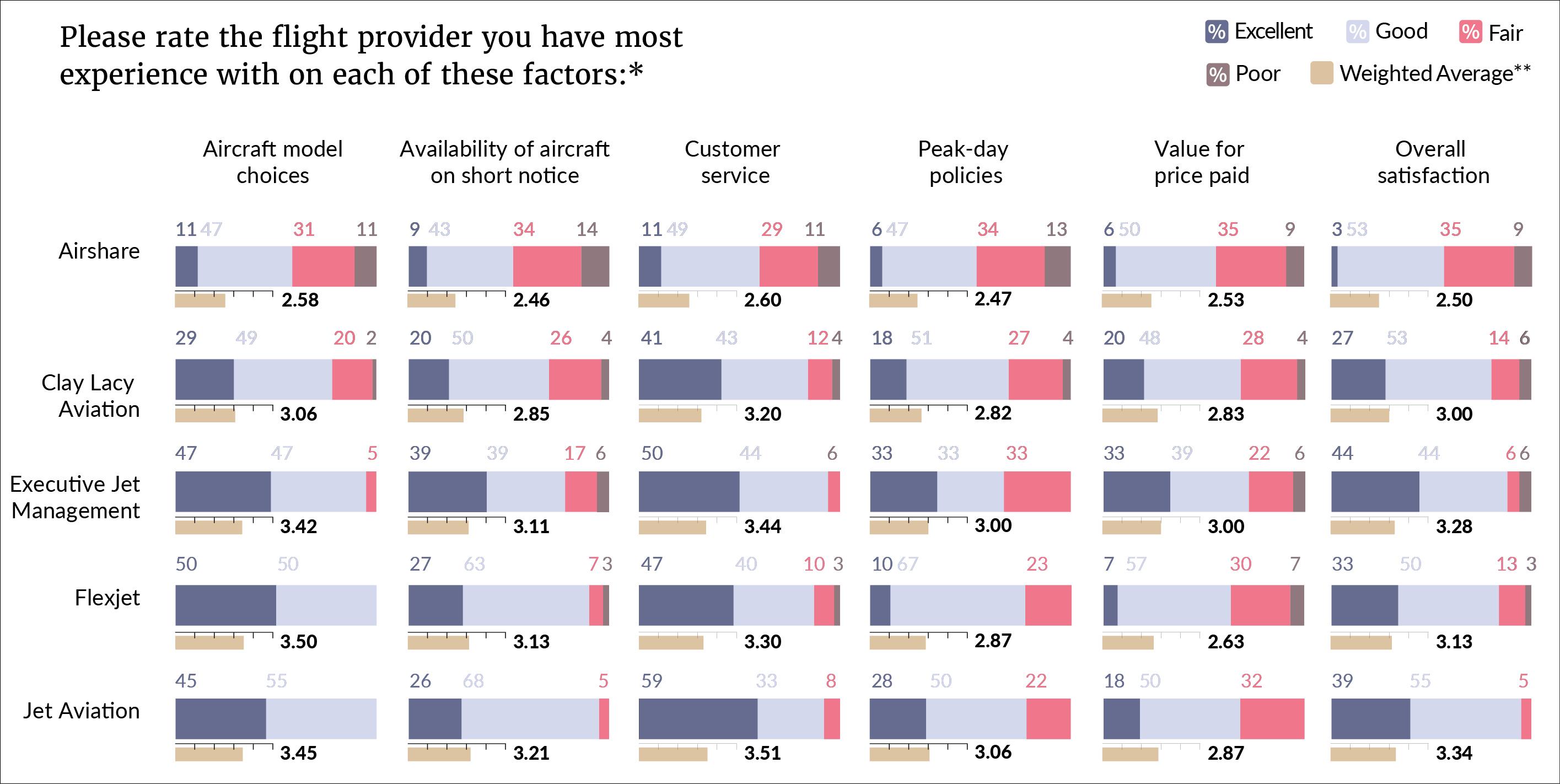 Here's what our subscribers had to say about charter, jet card, and fractional-share companies and bizjet membership clubs.