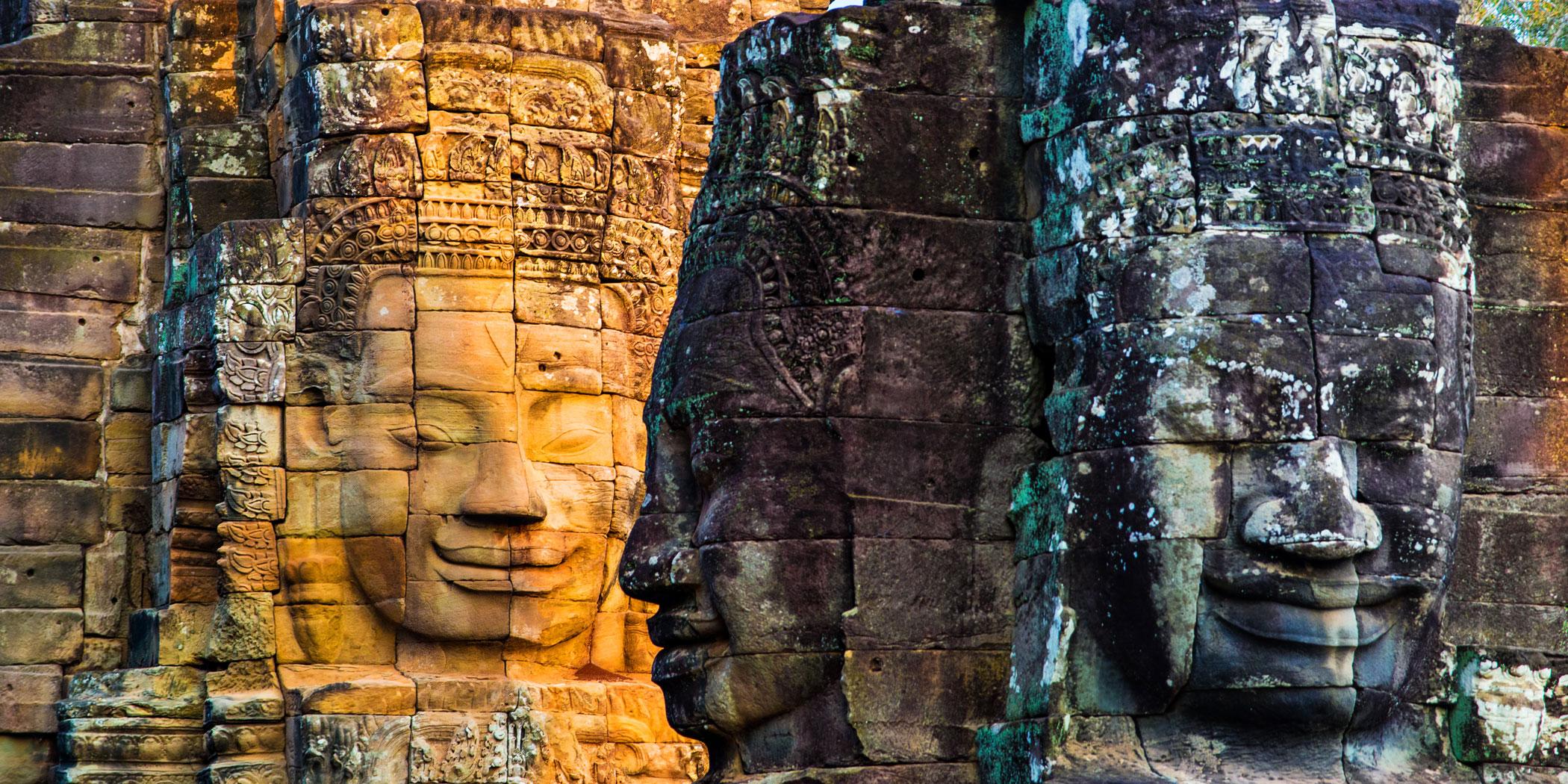 Each of the temple’s entry towers stands 75 feet tall and is adorned with four faces representing the rulers of the four cardinal points at the summit of Mount Meru in the Hindu religion. Because Angkor Thom was originally Buddhist, each face actually looks more like a smiling Buddha.