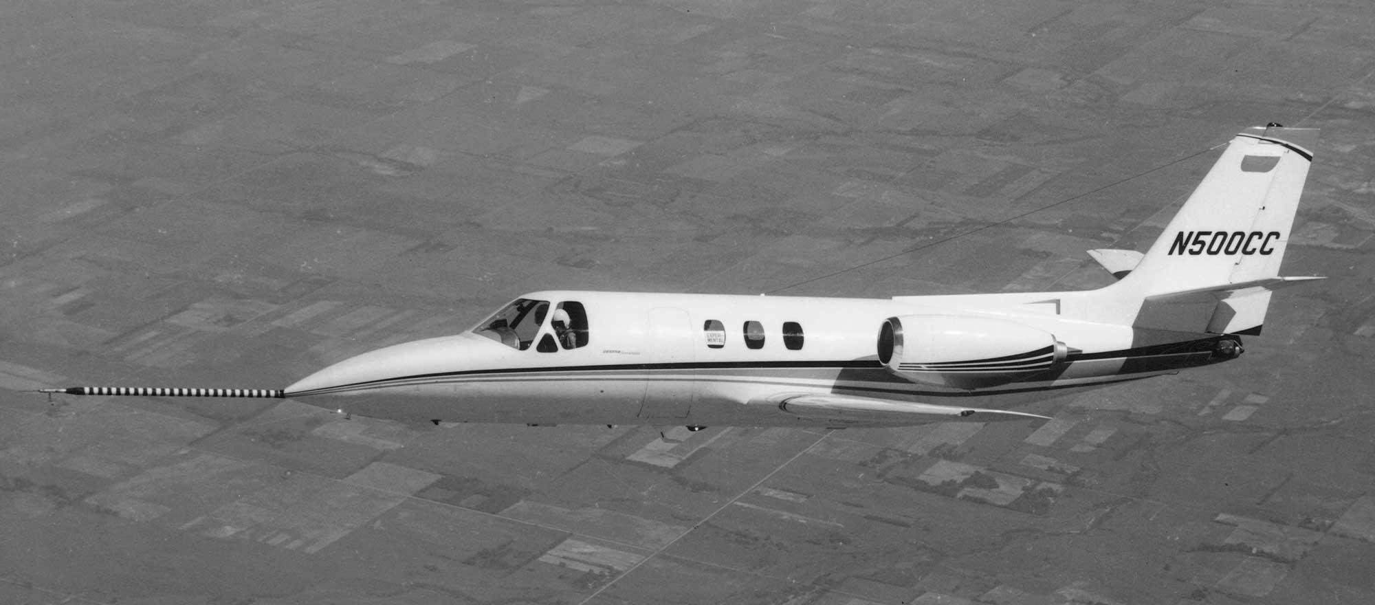 Cessna pondered offering a civilian variant of the T-37 during the late 1950s. The Model 407 would carry a pilot and three passengers at up to 460 miles per hour at  46,000 feet. It didn't make it past the mockup stage, but the idea of a passenger jet was never far from the minds of Cessna executives. In the 1960s, they surmised that a middle market existed between 500-mile-per-hour and 250-mile-per-hour turbojets. They guessed right.