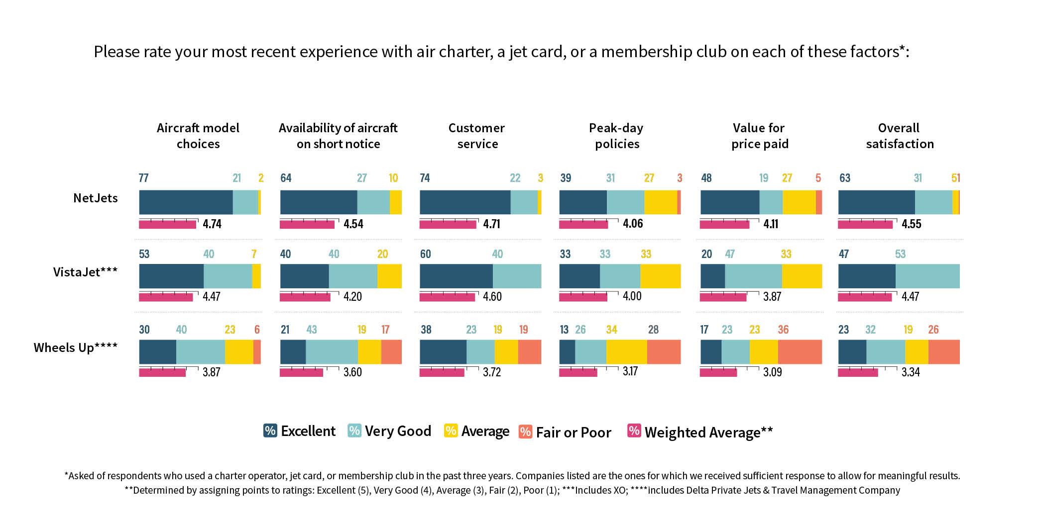 In our 2021 Readers' Choice Survey, we asked readers to rank charter and jet card providers and flight clubs. We received sufficient responses to report on six of the major companies. All of them scored well but NetJets ranked highest in every category.