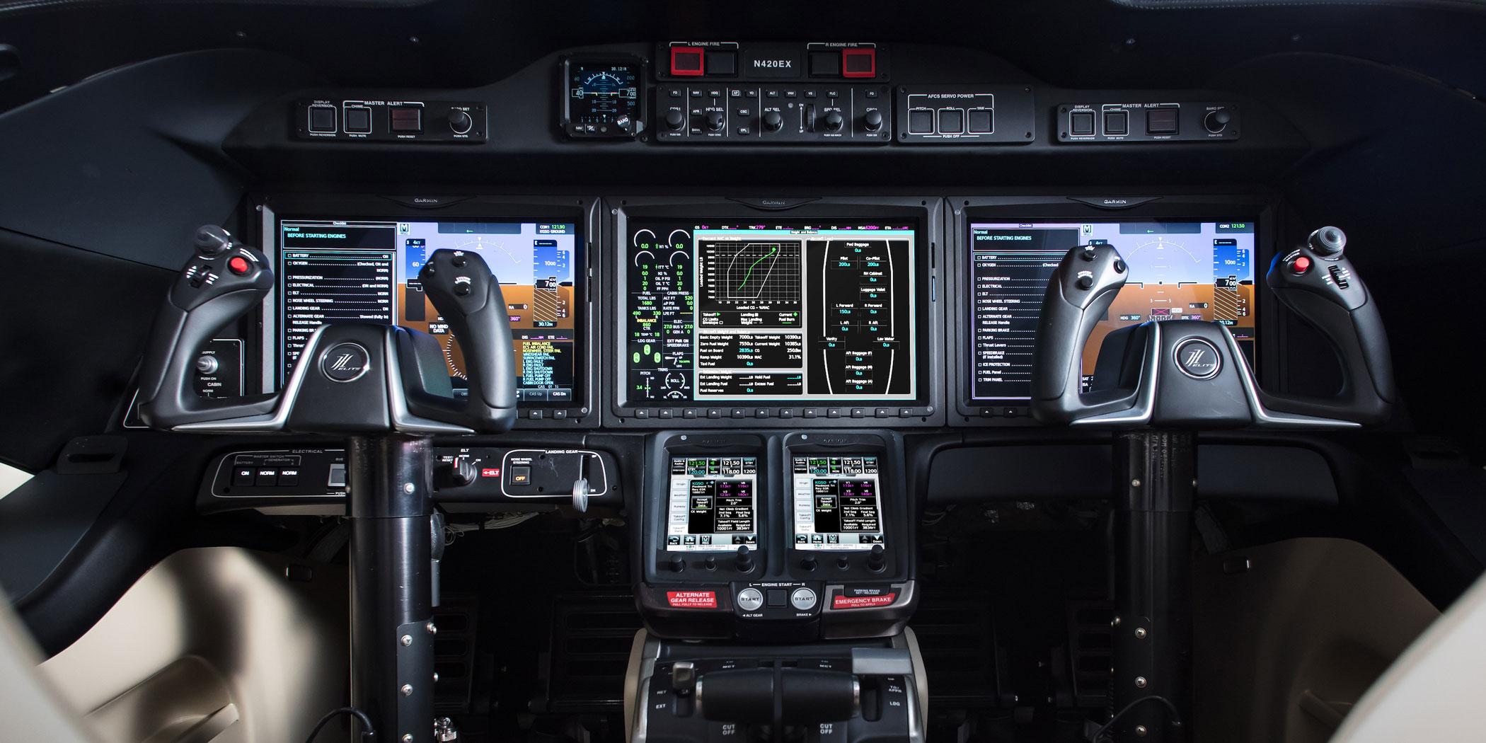 Key suppliers for the HondaJet include GE Honda Aero Engines for the HF120 engines (2,050 pounds of thrust each); Garmin for the G3000 touchscreen avionics; and Emteq for its SkyPro HD IFE and cabin-management system, which features Audio/Video on Demand, an interactive 3-D moving map, and an exterior camera. The system also provides for wireless control of lighting and monochromatic window shades at each seat via passengers’ personal electronic devices. With the SiriusXM satellite radio option, you can select station presets at your seat.