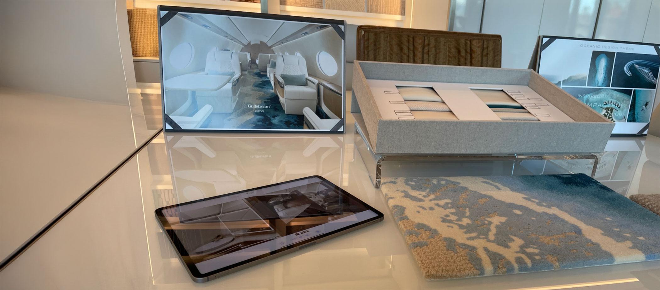 Mayfair showroom features immersive tools like the 3D Cabin Creator, allowing clients to personalize their aircraft.