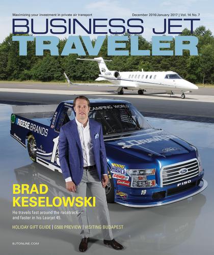 Stock-car driver Brad Keselowski . . . holiday gift guide . . . Gulfstream G500 preview . . .  visiting Budapest . . . Sikorsky S-76C+ review . . . donating aircraft to charity . . . fear of flying . . . aviation writers’ favorite aircraft . . . limo services . . . Volvo XC90 review . . . and more