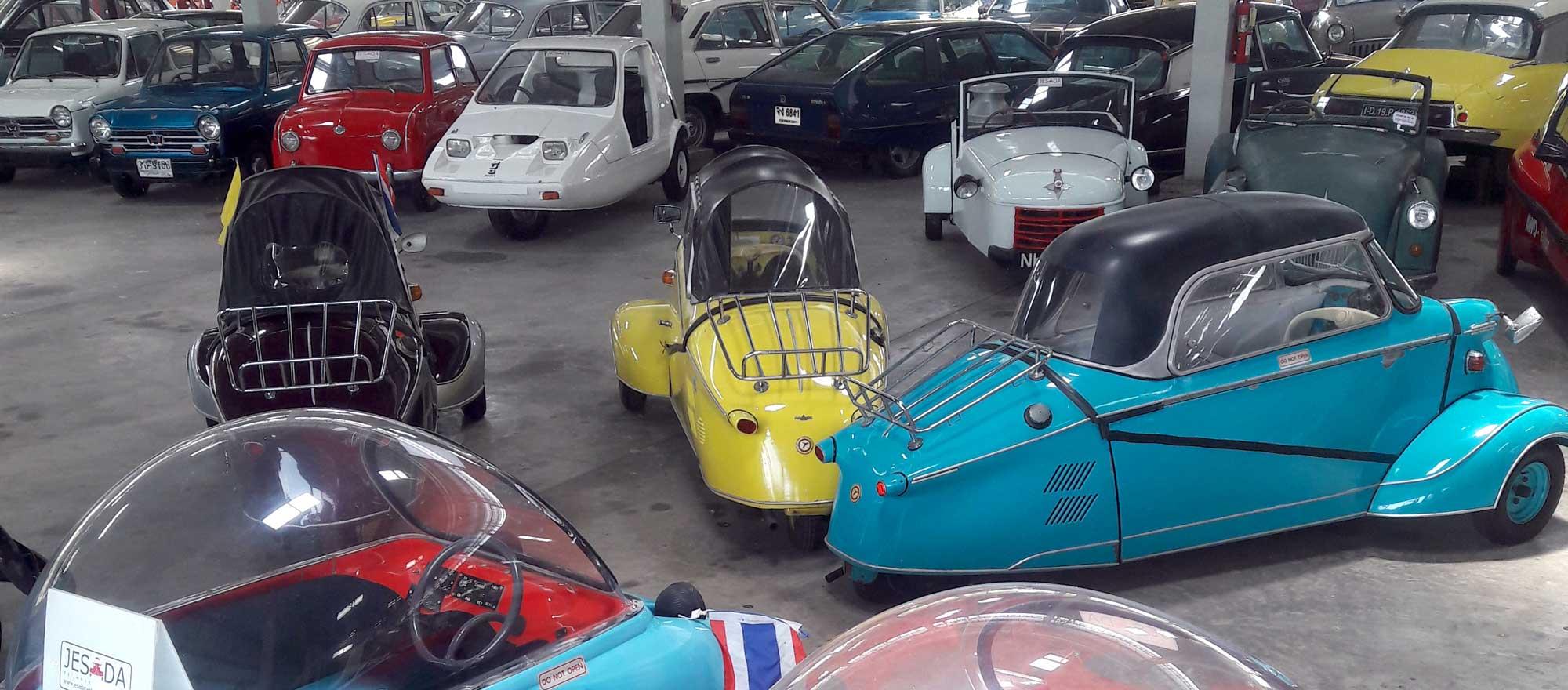 Next to the bubble cars, there’s an entire fleet of what appear to be leather-covered cars: they are Czechoslovakian Verolex Oskars, which were made through the 1950s and were covered in brown vinyl. From the same decade, there are a couple of astoundingly well-preserved Amphicars—the sort of car-boat combos that James Bond would have appreciated. There’s even a highly unusual little car with a steering wheel and controls at both ends, for driving either forwards or backwards!