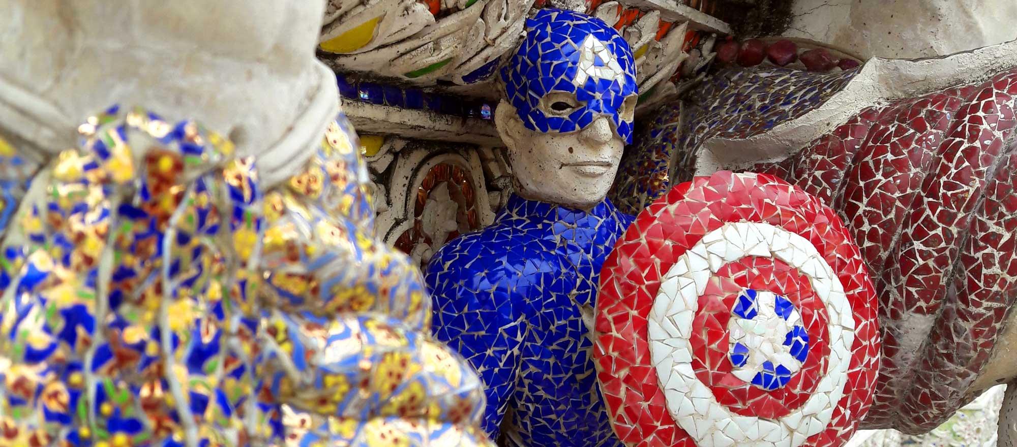 It’s a strange sight and one that has become relatively famous among Bangkok’s “secret” spots: take a short walk less than 100 meters to the northeast, however, and you’ll find a temple complex that’s even more surreal. Still within the Wat Pariwat complex, the newest temple has been decorated with an unusual cast of stars including Donald Duck, Popeye, Batman, Captain America, Superman, Captain Hook, Wolverine, and Che Guevara. You might also recognize the yellow Pikachu Pokemon rabbit, manga character Monkey D. Luffy, Dobby the slave (from Harry Potter), and what is said to be Barack Obama taking a selfie.