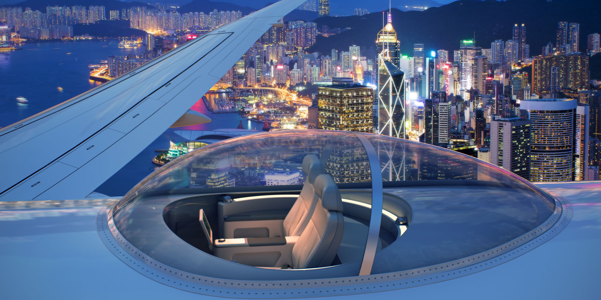 If you demand even more of an unobstructed view and money is no big deal, try a SkyDeck from Windspeed Technologies. This is basically a glass bubble affixed to the top of the aircraft that you can sit in. Who needs virtual reality when you can have this? Put on a cape and a pair of tights and you’re Superman. Windspeed estimates SkyDeck’s price at $8 million to $25 million, depending on aircraft size.
