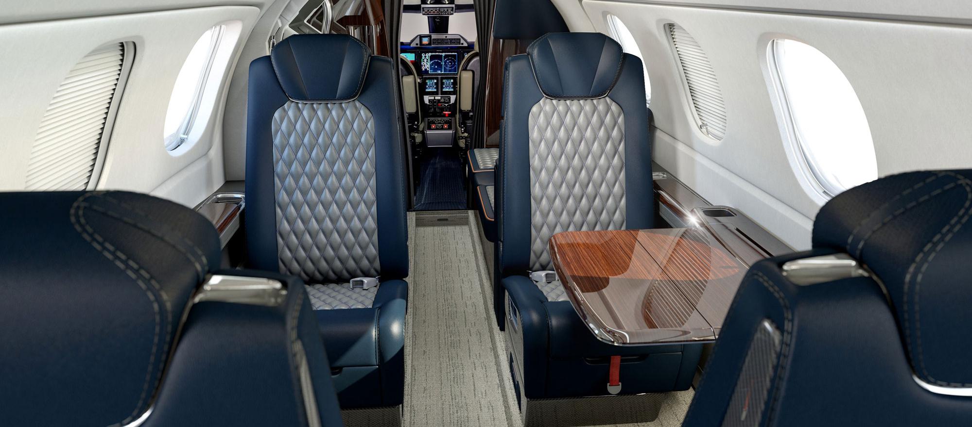 Because the 300E has all-new interior attach points and the seats have different rails, the updated cabin cannot be retrofitted to the approximately 450 in-service Phenom 300s.