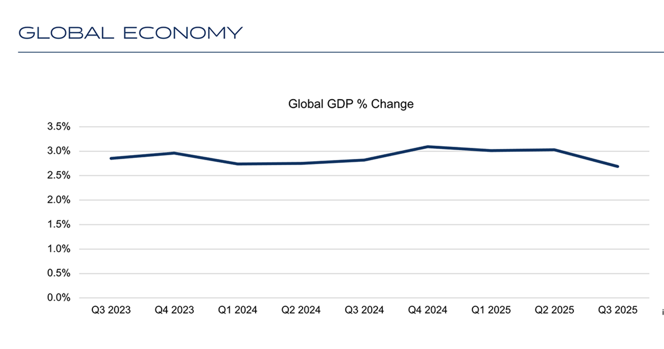 • Following uncertainty earlier this year, the global economy continued to grow in Q3 2025 and many economists increased their expectations for future growth.