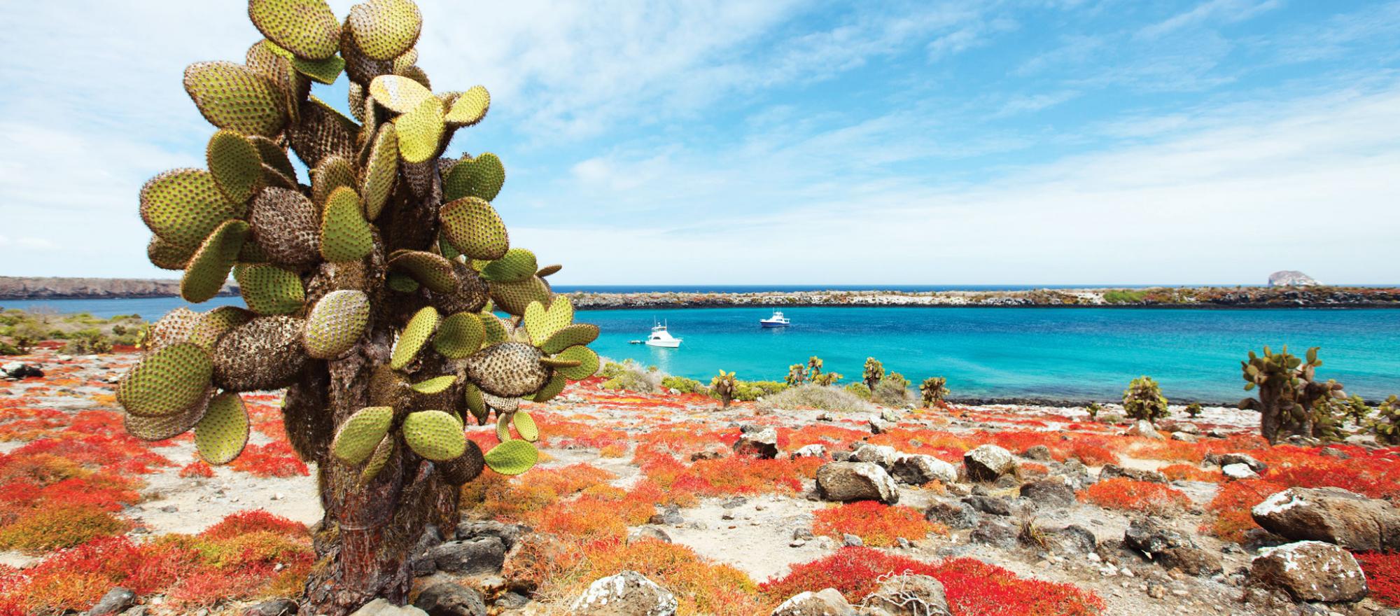 The last full day of cruising brought us to South Plazas, a desolate flyspeck of an isle with unusual 15-foot-high Dr. Seuss-like cactus trees. These cacti appear to grow between cracks in rocks where only a dusting of dirt arises. South Plazas also harbors a spotty ground carpet of orange Sesuvium plants and lots of golden land iguanas.