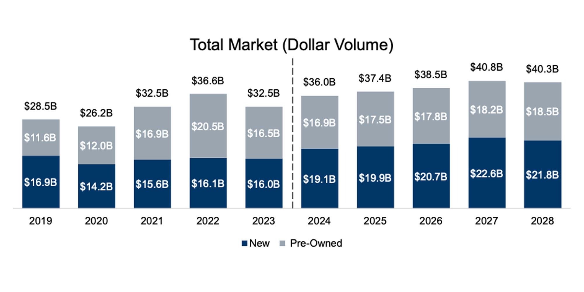 • After a couple of years of declines, pre-owned transactions are expected to return to a more typical growth pattern in 2024.