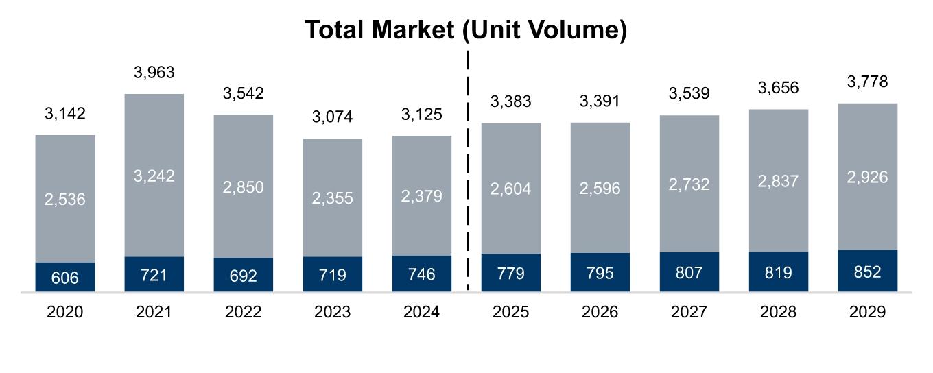 • Pre-owned transactions are expected to continue their 2024 growth in 2025. Annual unit volume should increase 9.5 percent and dollar volume should increase 6.2 percent. Average annual growth is expected to continue over the next five years at a rate of 4.2 percent. Dollar volume should grow at an average annual rate of 3.4 percent during that time.